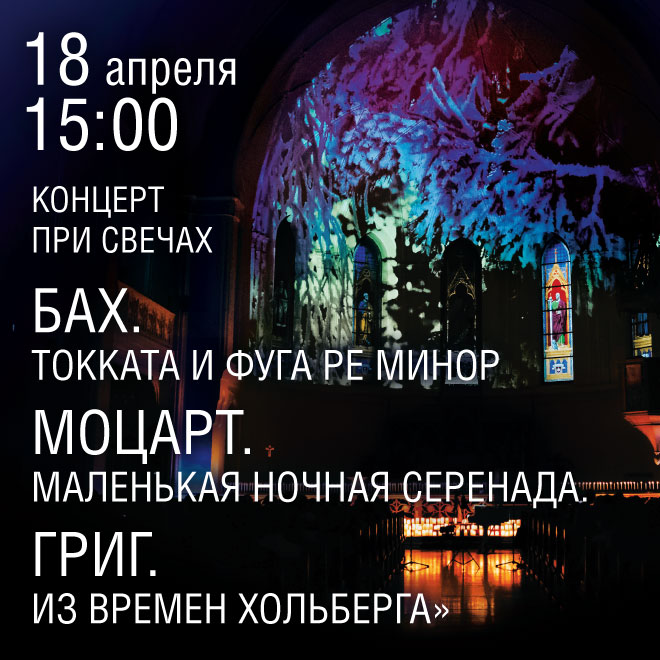 Внимание! 28 февраля у концерта для трех органов при свечах «От Баха до Linkin Park» изменилось время начала, концерт состоится на 3 часа позднее, в 18:00. 07.02.2026