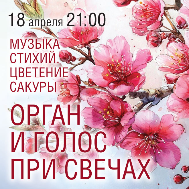 18 апреля в концерте «Музыка стихий. Цветение сакуры. Орган и голос при свечах» прозвучат традиционные японские мелодии в исполнении Хироко Иноуэ. Не упустите шанс ощутить гармонию в величественном пространстве собора! 11.04.2026